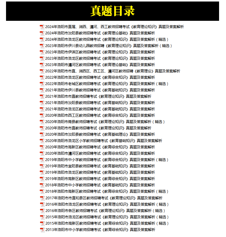 2013年-2024年洛阳市中小学教师招聘考试笔试真题33套