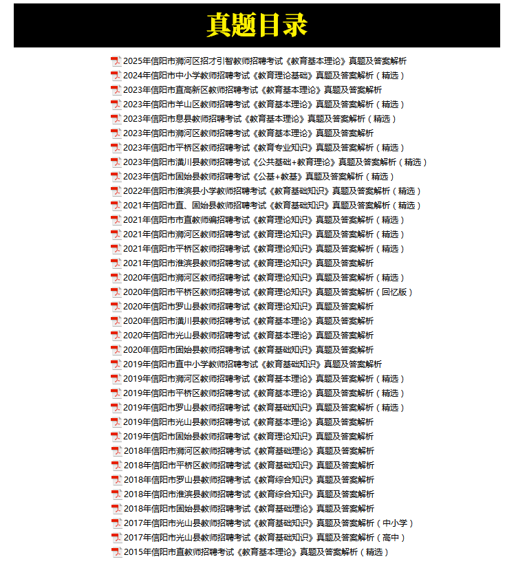 2015年-2025年信阳市中小学教师招聘考试笔试真题35套