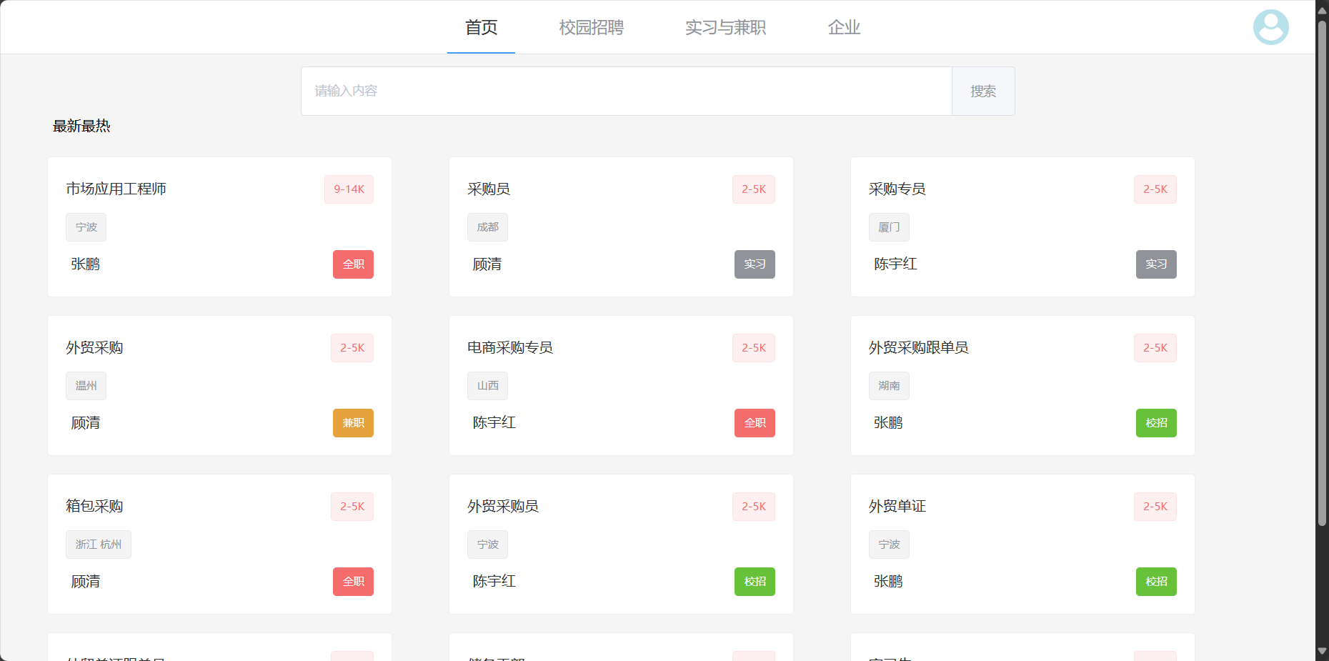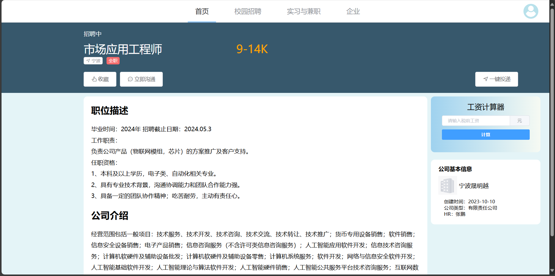 邮箱验证注册,招聘信息的CRUD,Websocket简易的聊天系统。
