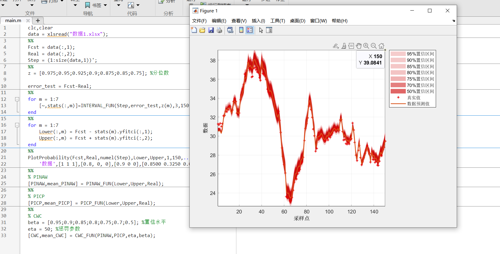 研究内容:可任意选择置信区间,区间覆盖率picp、区间平均宽度百分比等等,可用于预测不确定性,效果如图所示,完全满足您的需求~