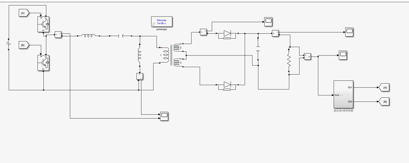 半桥LLC谐振变换器开环、闭环和软起动设计及其simulink仿真模型,该设计合理,运行稳定,包含设计报告pdf及多版本设计,适合新手学习使用!!仿真与设计报告完全一致。
