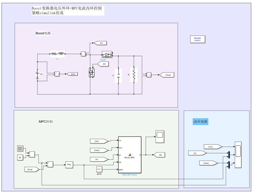 作品简介 作者搭建了基于PI电压外环+MPC电流内环控制策略的Boost变换器simulink仿真,该模型运行性能优异,适合新手学习使用,有想发文章或者研究的同学,可以做对比使用。电路模型: 仿真波形: 创作时间:
