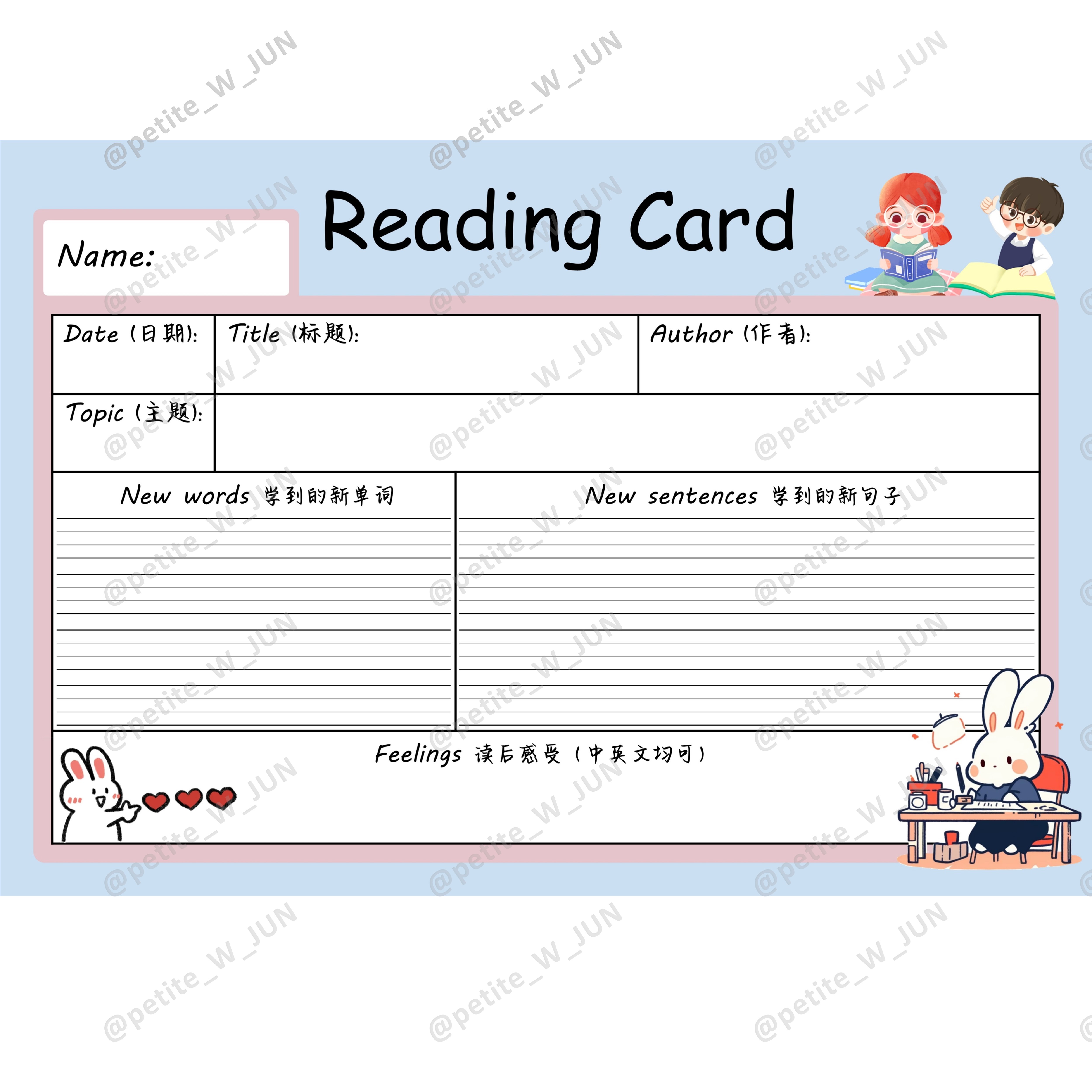 英文读书卡Reading Card