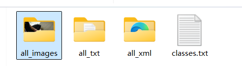 all_txt文件夹和classes.txt: 存储yolo格式的txt标注文件,数量和图像一样,每个标注文件一一对应。