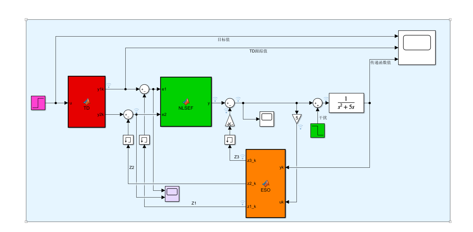 二阶非线性ADRC自抗扰控制器,控制简单的传递函数(可直接内部调参)