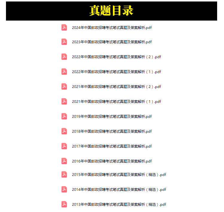 2013年-2024年中国邮政春招秋招招聘考试笔试真题13套