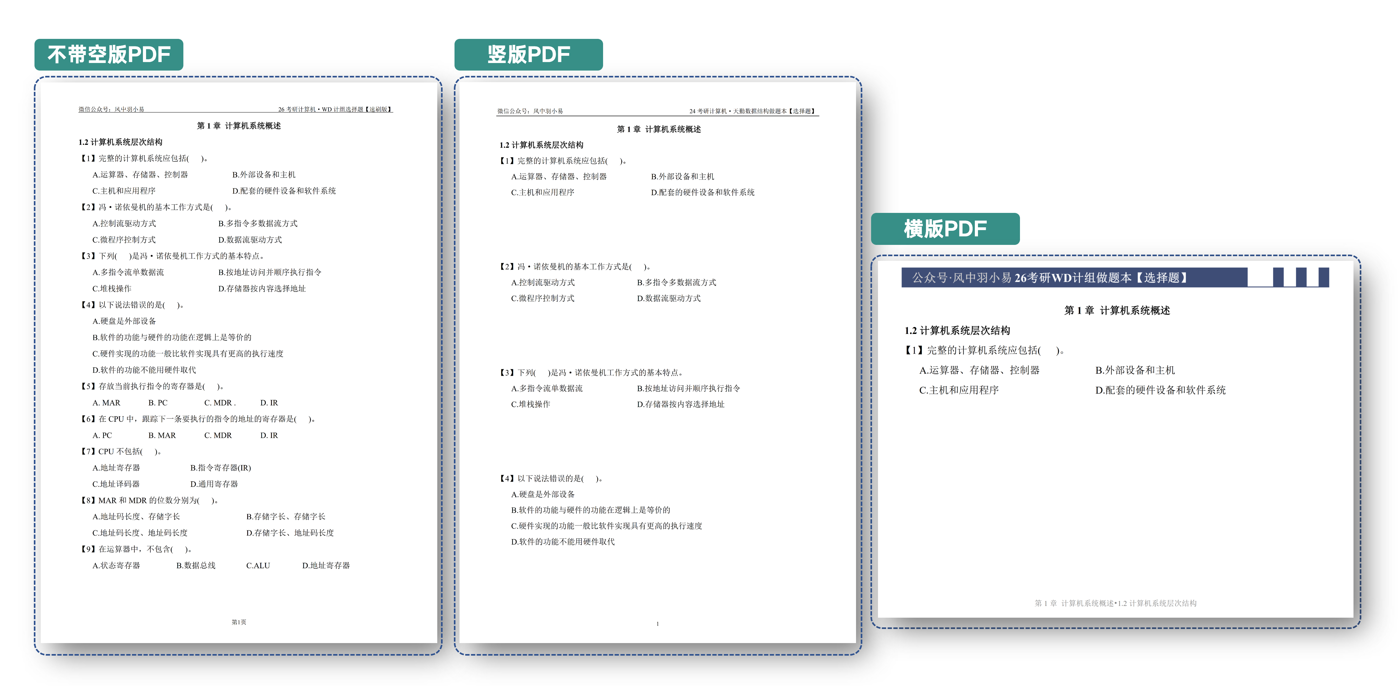 - 第三种:竖版速刷版,每道题没有做题空间,方便我们二刷三刷五六刷!