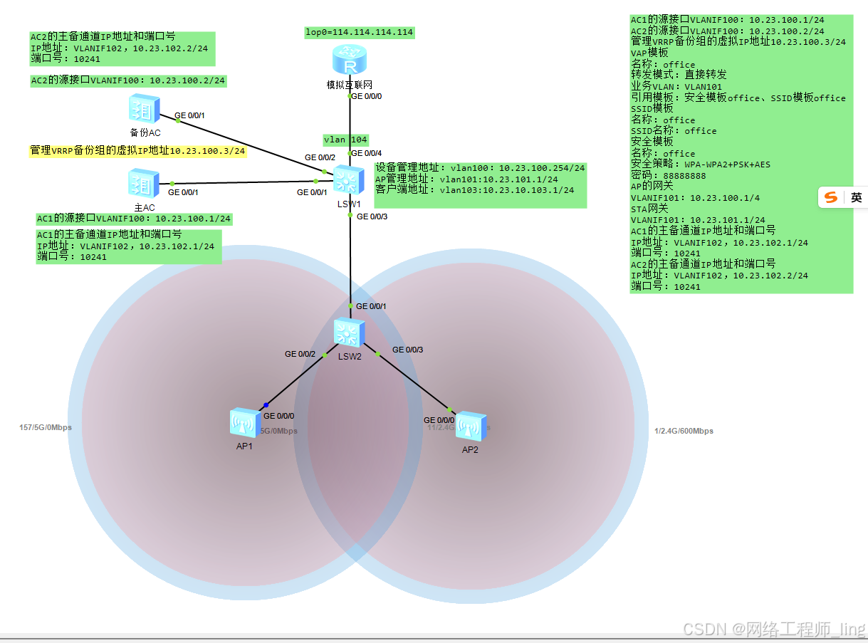 【WLAN】华为三层组网VRRP双机热备份(直接转发)